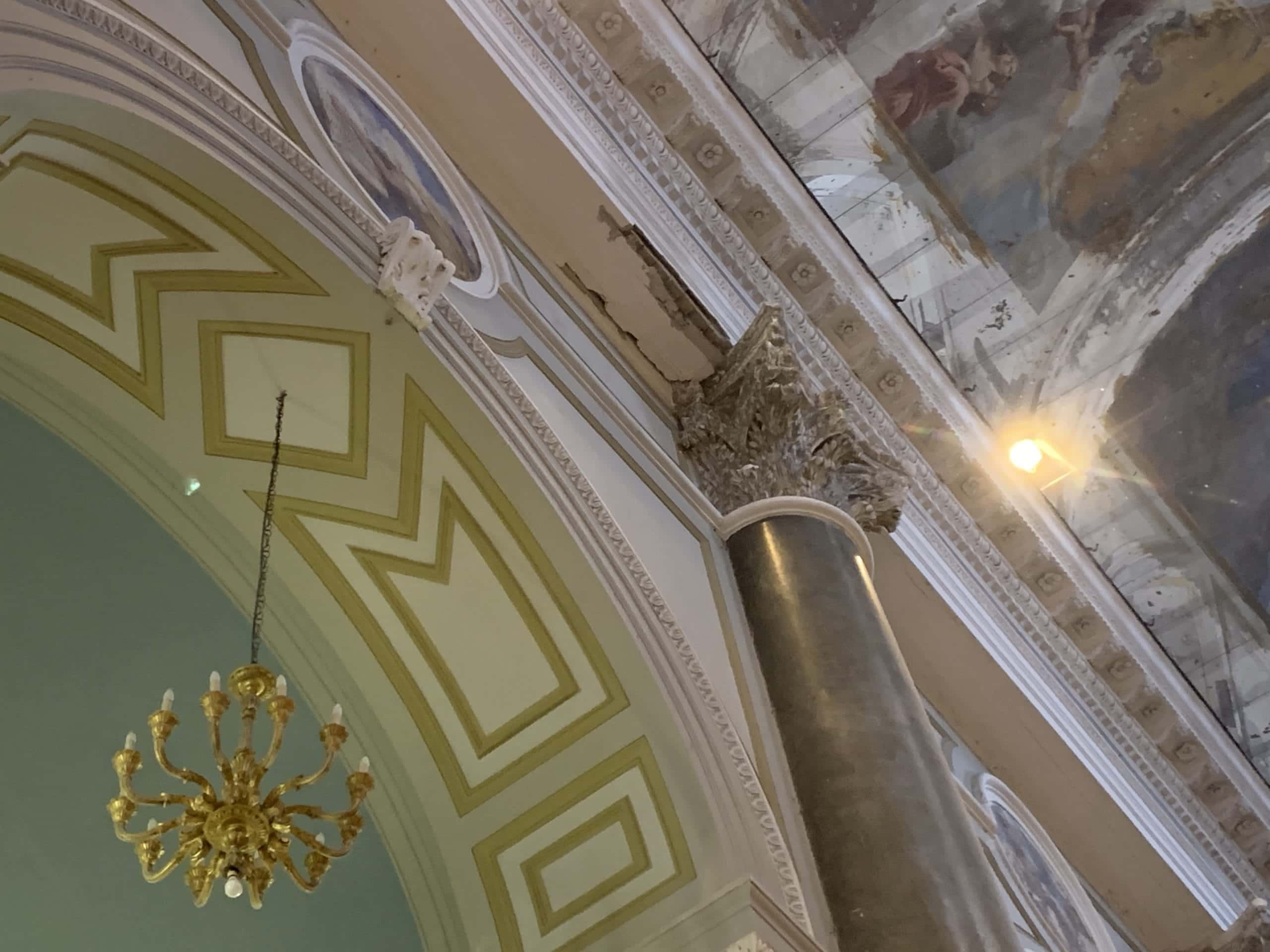 Una situazione difficile, che ha obbligato fedeli e addetti a usufruire dell’ingresso laterale per poter accedere alla parrocchia, una delle più grandi dell’intero circondario, e che già da anni mostrava segni di cedimento con anche caduta di intonaco e calcinacci all’interno. Diversi anni fa, infatti, furono posizionate delle reti sotto al soffitto per riparare dalla caduta di polvere e pietre, ed è recente l’episodio di una suora sfiorata da un pezzo di intonaco caduto mentre era intenta a pulire.