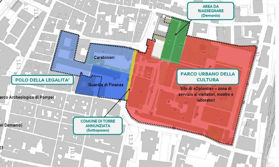 • Polo della Legalità (Area Sud): Ospiterà le sedi dell’Arma dei Carabinieri e della Guardia di Finanza. L’obiettivo è garantire una presenza costante dello Stato e una maggiore sicurezza per i cittadini.