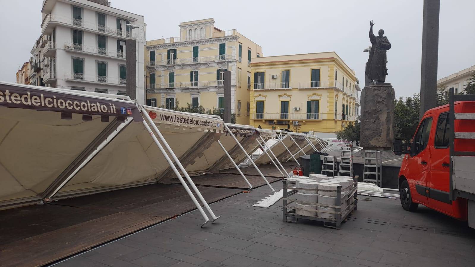 In corso in queste ore l’allestimento in Piazza Santa Croce degli stand per la Festa del Cioccolato.
