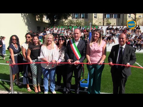 Un campetto polifunzionale per le attività sportive svolte all’esterno. È quello inaugurato oggi, lunedì 22 settembre, dal sindaco Luigi Mennella presso la sede centrale dell’istituto comprensivo Giacomo Leopardi. Una cerimonia che segue quella altrettanto partecipata dello scorso anno, quando l’amministrazione tagliò il nastro alla ristrutturata palestra coperta, attigua proprio al riqualificato spazio all’aperto. Entrambi gli interventi sono stati realizzati grazie ai fondi stanziati (in due annualità differenti) dal settore pubblica istruzione del Comune, in seguito al lavoro portato avanti dall’assessore Mariateresa Sorrentino.