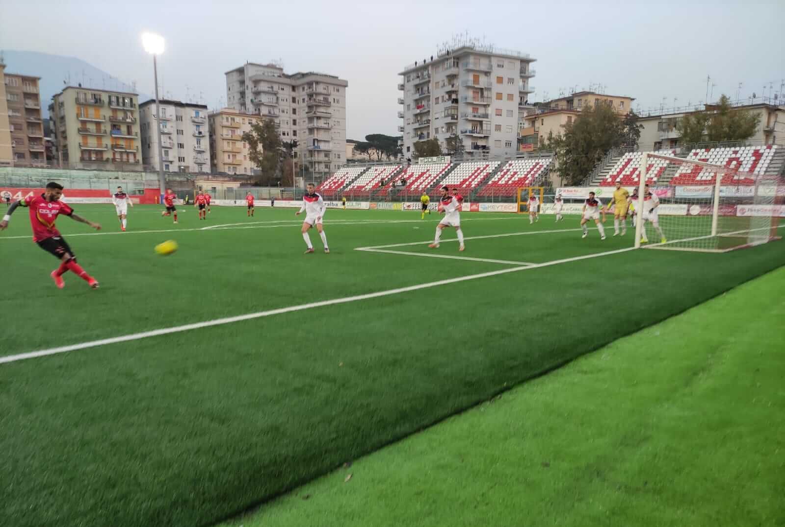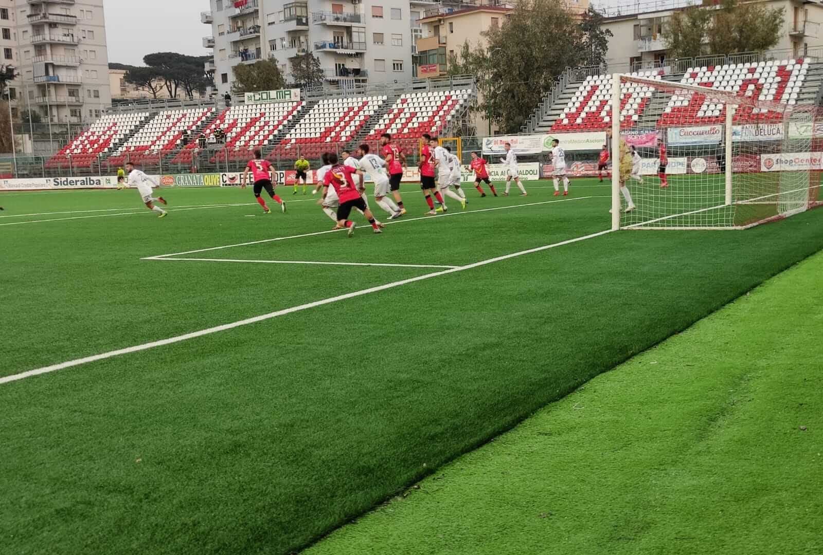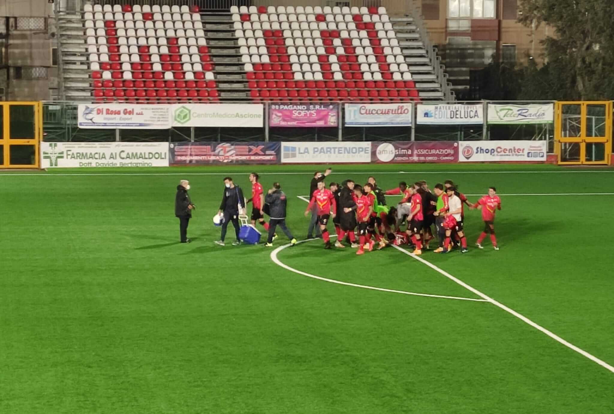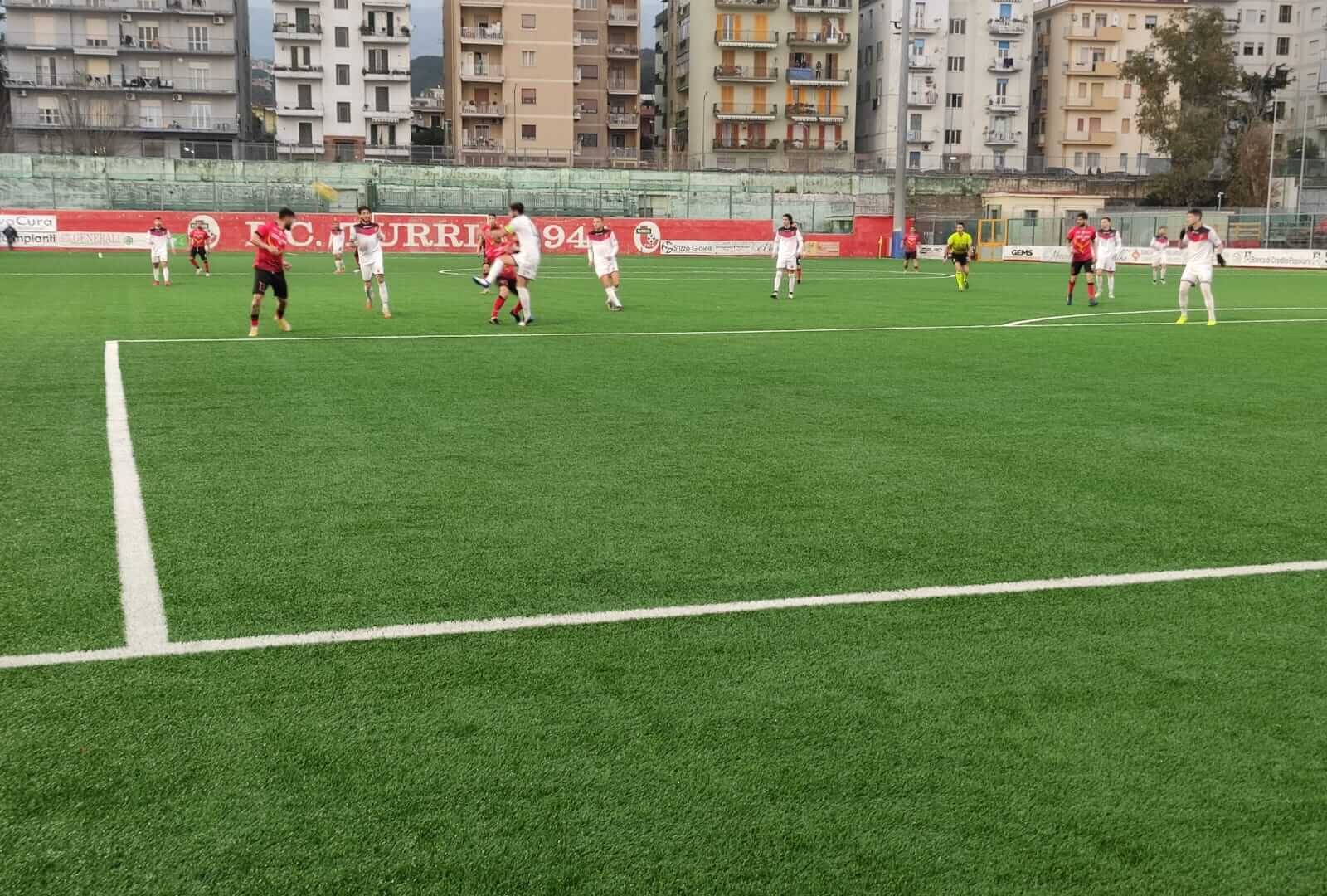 Nella seconda frazione arriva il gol di Giannone, messo a segno su calcio di rigore, che regala i tre punti alla squadra di Torre del Greco.