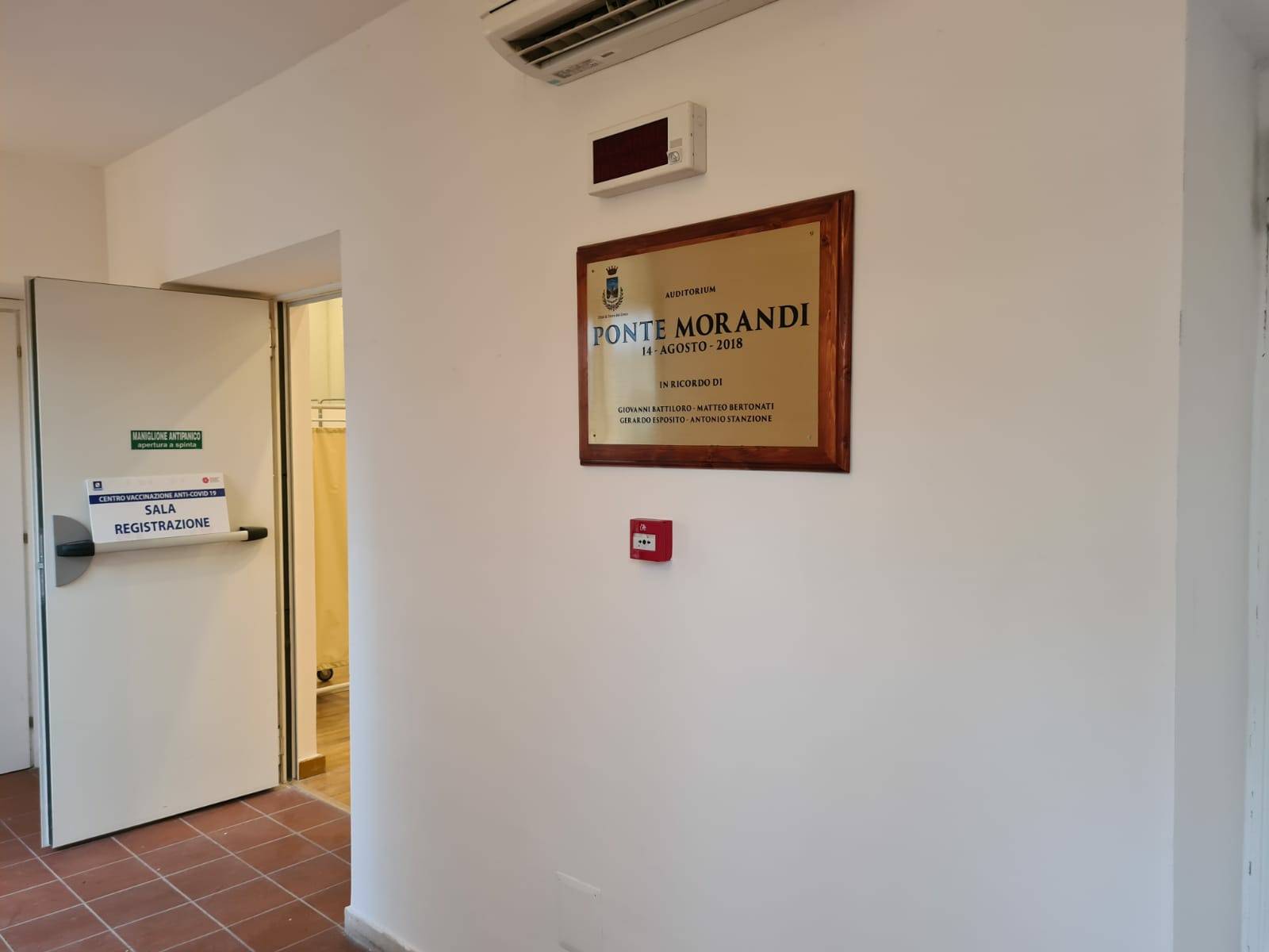 La sala adibita a Centro Vaccinazione Anto-Covid 19 è quella intitolata a Giovanni, Matteo, Gerardo e Antonio, prematuramente scomparsi nella tragedia del Ponte Morandi.”