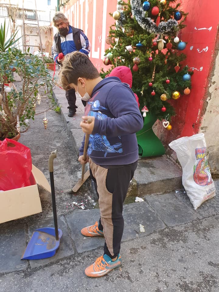 “Non ci sono più rifiuti e degrado ma solo tanto Amore per la propria Città. – scrive l’associazione “Vento Nuovo” – Un Amore che si esprime quotidianamente in tanti modi e che nel periodo natalizio non poteva che esprimersi con delle meravigliose decorazioni che i residenti del luogo hanno voluto donare ed allestire per il proprio quartiere ( Albero e Presepe non potevano mancare). Parole come riqualificazione, rinascita, decoro sono tutte parole che si leggono un po’ ovunque in giro, ma se volete vederle con i vostri occhi diventare realtà allora recatevi alla “ Contrada Pezzentelle” dove ora finalmente i bambini hanno un posto migliore dove vivere. La cosa più sorprendente di questa storia sapete qual è? In prima linea, davanti a tutti, per questa immensa opera di rinascita ci sono i giovani e giovanissimi del posto.”
