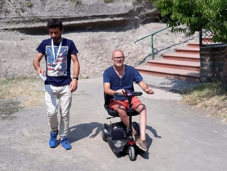 Mortificante. È questa l’unica parola che possa sintetizzare quanto accaduto ieri mattina all’ingresso degli Scavi di Oplonti a Torre Annunziata. Un disabile, arrivato in città con la propria carrozzina elettrica in compagnia di una amica esclusivamente per visitare la meravigliosa dimora romana, si è dovuto scontrare con l’amara verità: la Villa di Poppea è sprovvista di un accesso per persone con disabilità motoria. I due amici avevano raggiunto i locali della Pro Loco Oplonti, a pochi passi dagli Scavi, ricchi di curiosità, ma già con qualche presentimento: “Possiamo avere qualche informazione?”, hanno chiesto. “Avrò problemi all’ingresso?”, la domanda successiva dell’uomo, con il volto sorridente ma lo sguardo timoroso. E così, dopo aver offerto brochure informative sulla villa e sulla città, il presidente della Pro Loco Ciro Maresca e un volontario del Servizio Civile hanno accompagnato i due turisti all’ingresso degli Scavi. Qui, estasiati dalla bellezza della villa, non hanno saputo rinunciare a proseguire nella visita. “Ce la faccio a fare qualche passo senza carrozzina”, insisteva l’uomo, che nel frattempo già si stava alzando, non senza difficoltà, sostenendosi all’amica. I volontari della Pro Loco, assieme all’agente di polizia municipale in servizio quotidianamente a via Sepolcri, hanno quindi aiutato i due a scendere la lunga scala di accesso alle rovine, trasportando la pesante carrozzina elettrica fino al giardino sottostante.