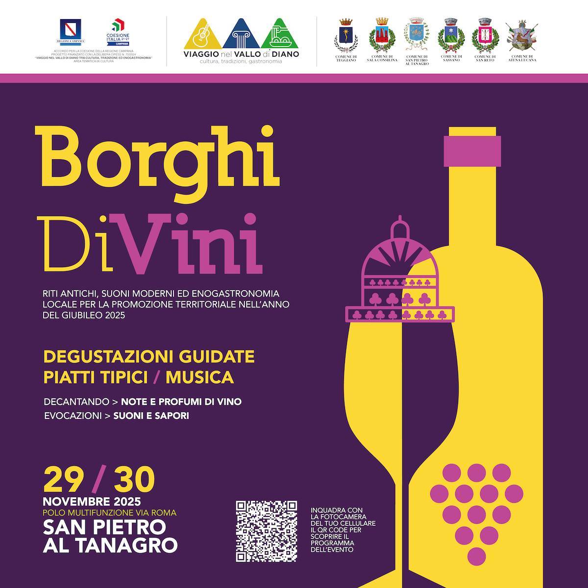 Due serate pensate per celebrare il gusto, le radici e l’identità del Vallo di Diano nell’anno del Giubileo 2025: i prossimi 29 e 30 novembre, a San Pietro al Tanagro, “Borghi DiVini” accompagnerà il pubblico in un viaggio sensoriale tra suoni, profumi ed eccellenze enogastronomiche che raccontano la storia e la cultura della comunità.